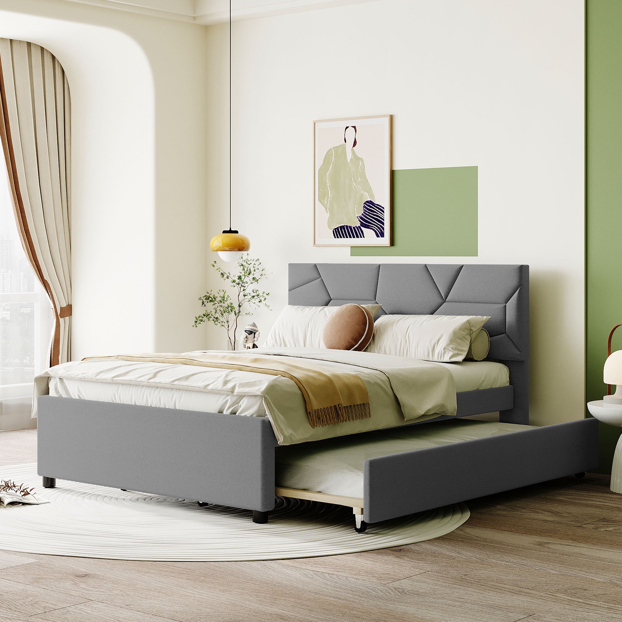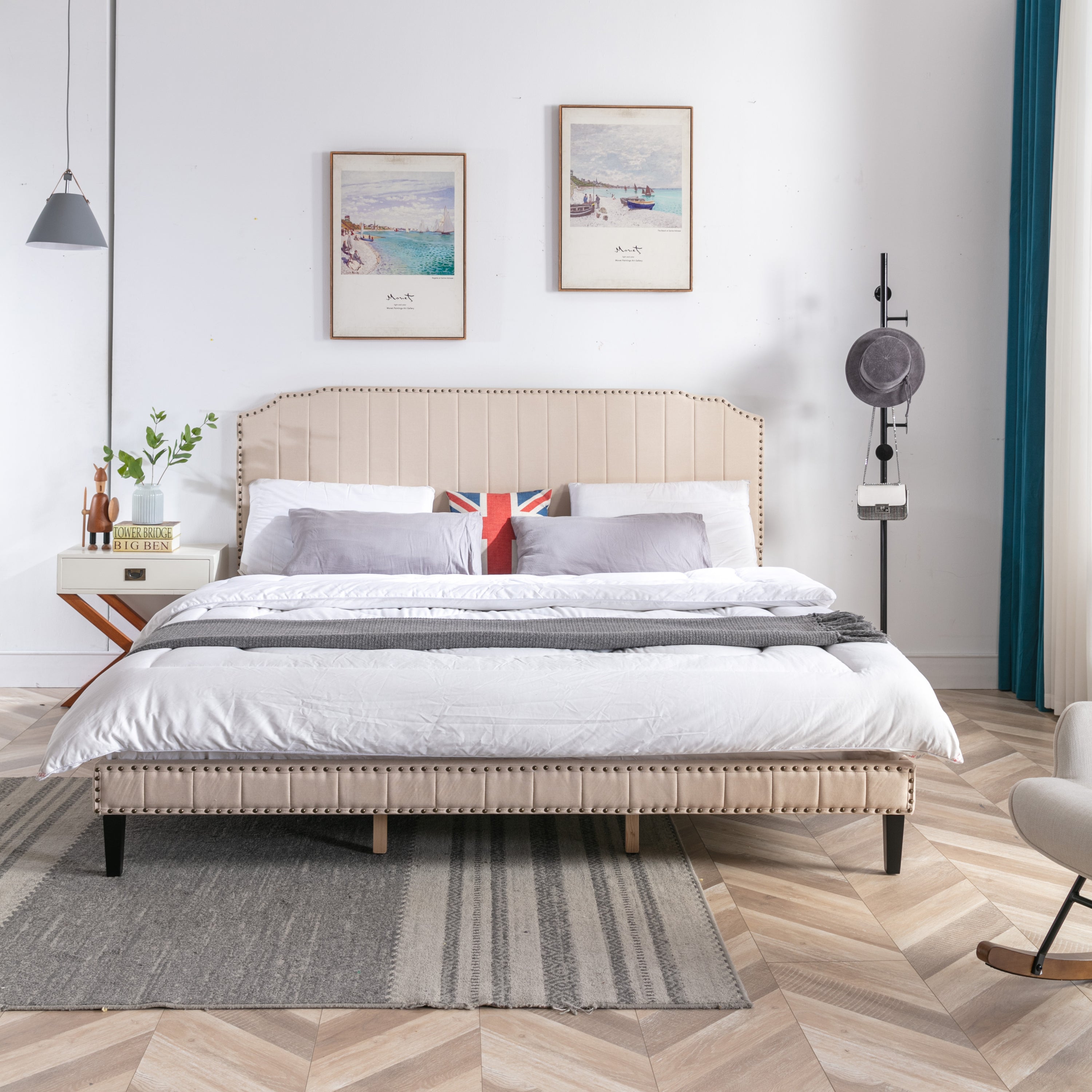 Light Grey Bed Frame with Adjustable Border Headboard King Size