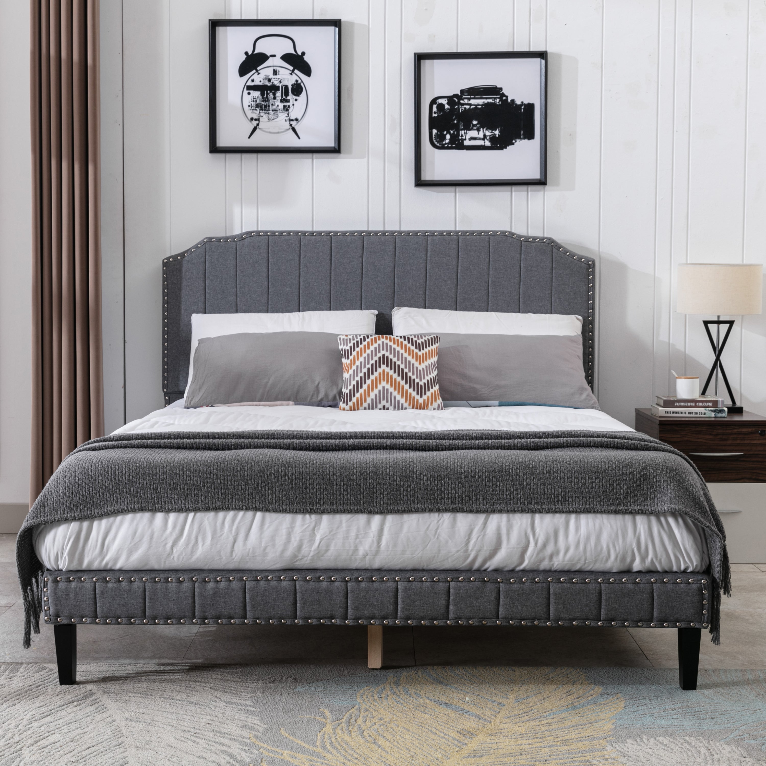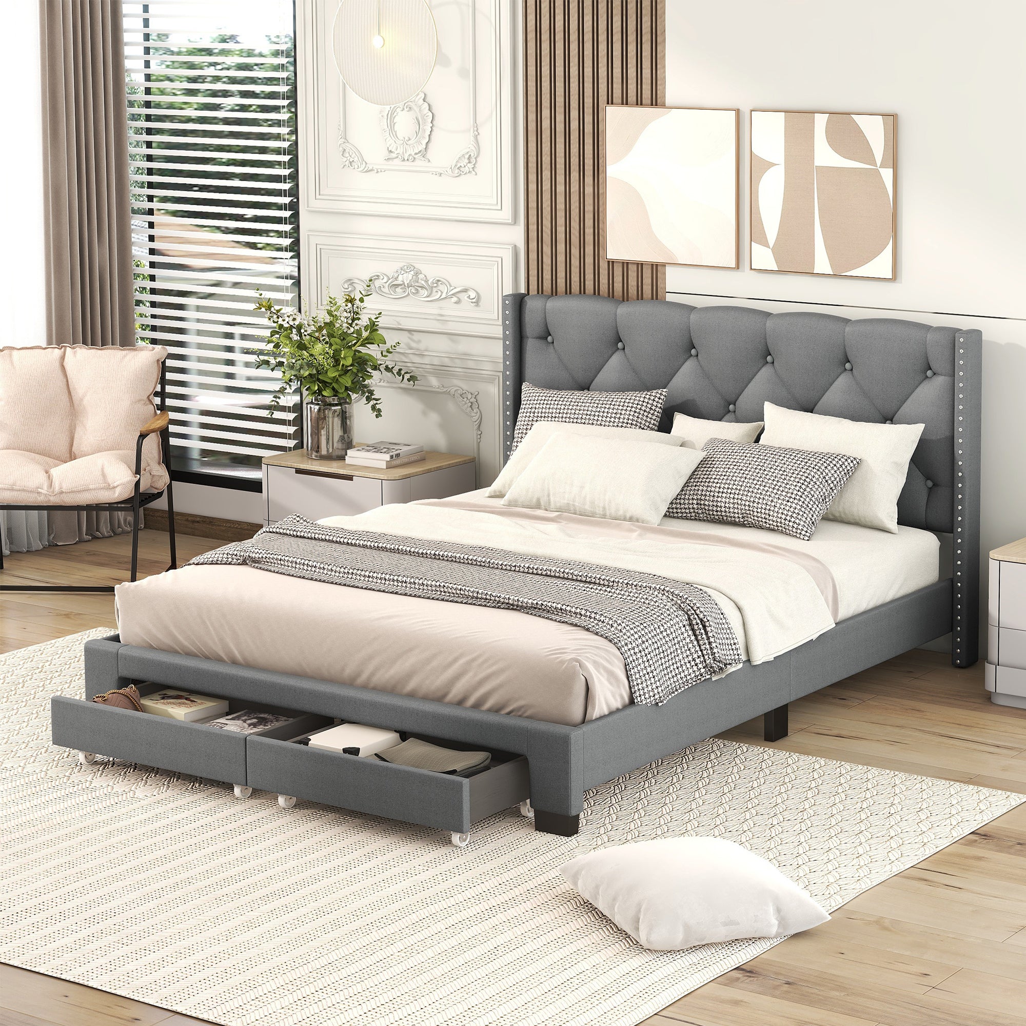 Queen Size Storage Bed Linen Upholstered Platform Bed with Two Drawers - Gray
