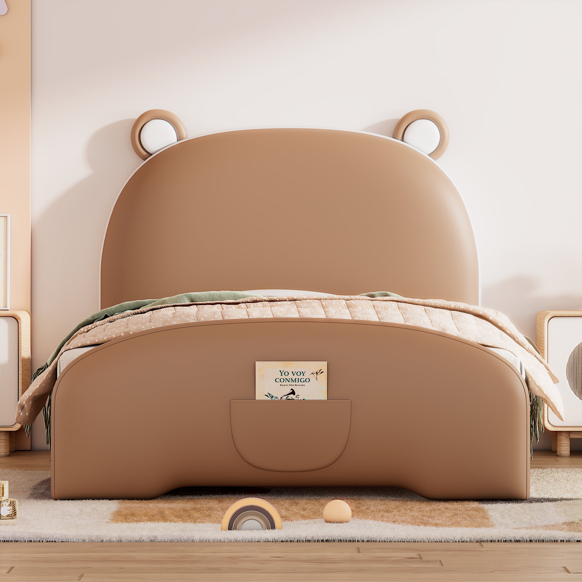Full Size Upholstered Platform Bed with Cartoon Ears Shaped Headboard, White