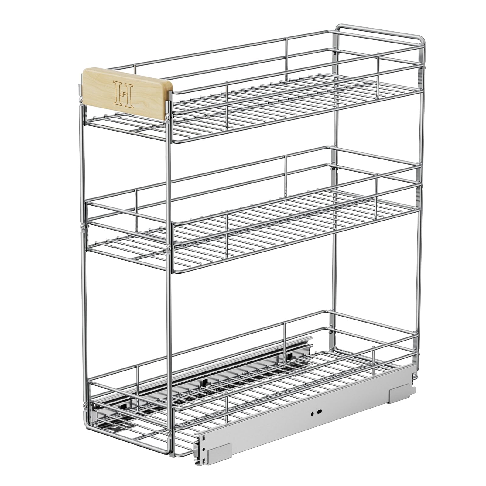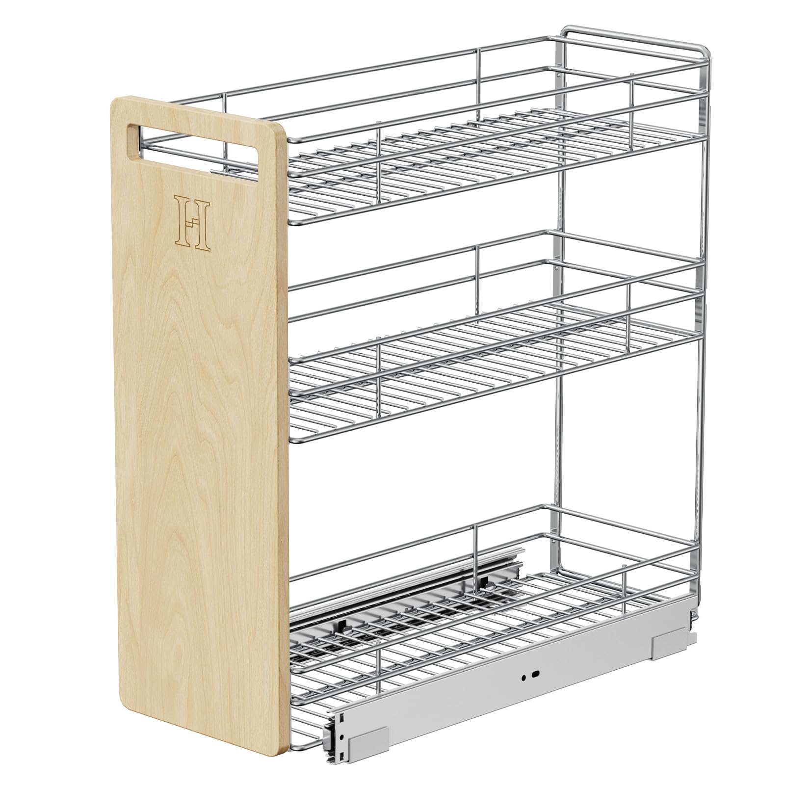 3-Tier Pull-Out Shelf With Wooden Handle Planks