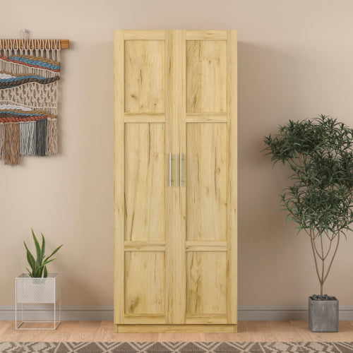 Wood Full Size Loft Bed with Wardrobes and 2-Drawer Desk with Cabinet, Gray